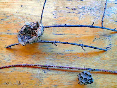 Anna's hummingbird nest found in a Russian olive tree and wasp nest found in a salt cedar.